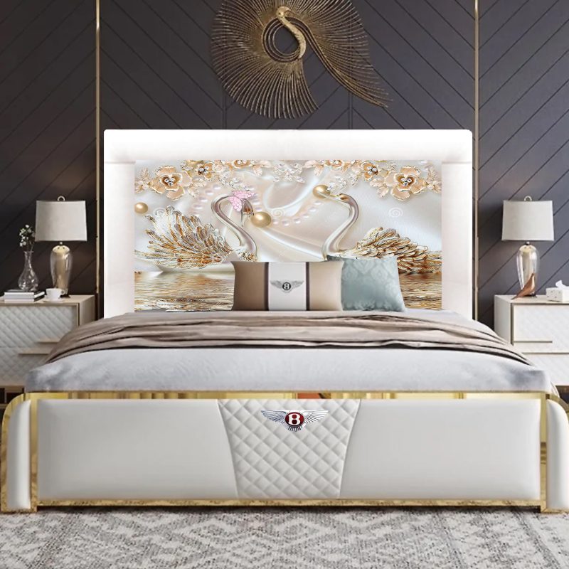 cabecero cama tapizado en polipiel y acolchado a base de madera totalmente hecho a mano,dibujo permanente lavable,resistente a arañazos de gatos,tamaños disponibles 90x70cm,105x70cm,115x70cm,135x70cm,150x70cm el tamaño se puede personalizar y la imagen tambien,el cabecero se coloca al nivel del colchon colgado en la pared lleva ganchos especificos,el marco esta disponible en colores blancos marrones y grisses,el dibujo es imagen realista
